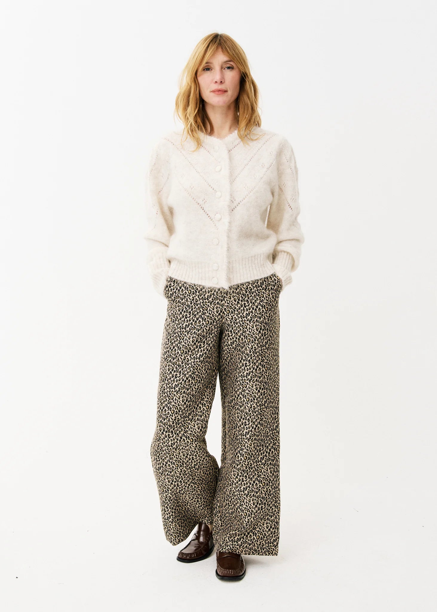 Elevate your wardrobe with the Maison Anana Leopard Trouser, featuring a stylish wide-leg cut that offers both comfort and a flattering silhouette. Crafted from quality fabric, this trouser balances bold leopard print with a relaxed fit, perfect for making a confident yet refined statement in any setting.
