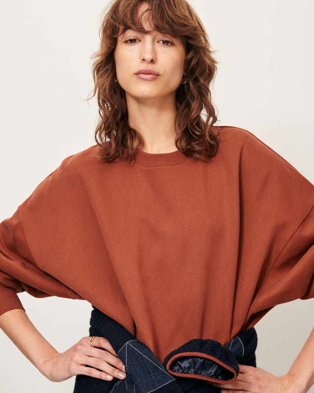 Oversized round-neck sweatshirt in brushed fleece, made in Portugal.